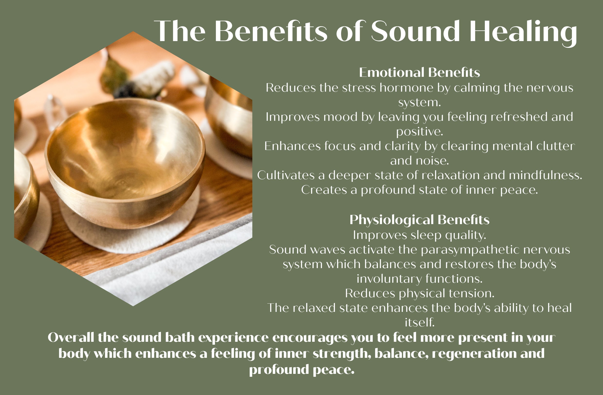 Cleanse your soul and restore balance from the immense power of sound and vibration.