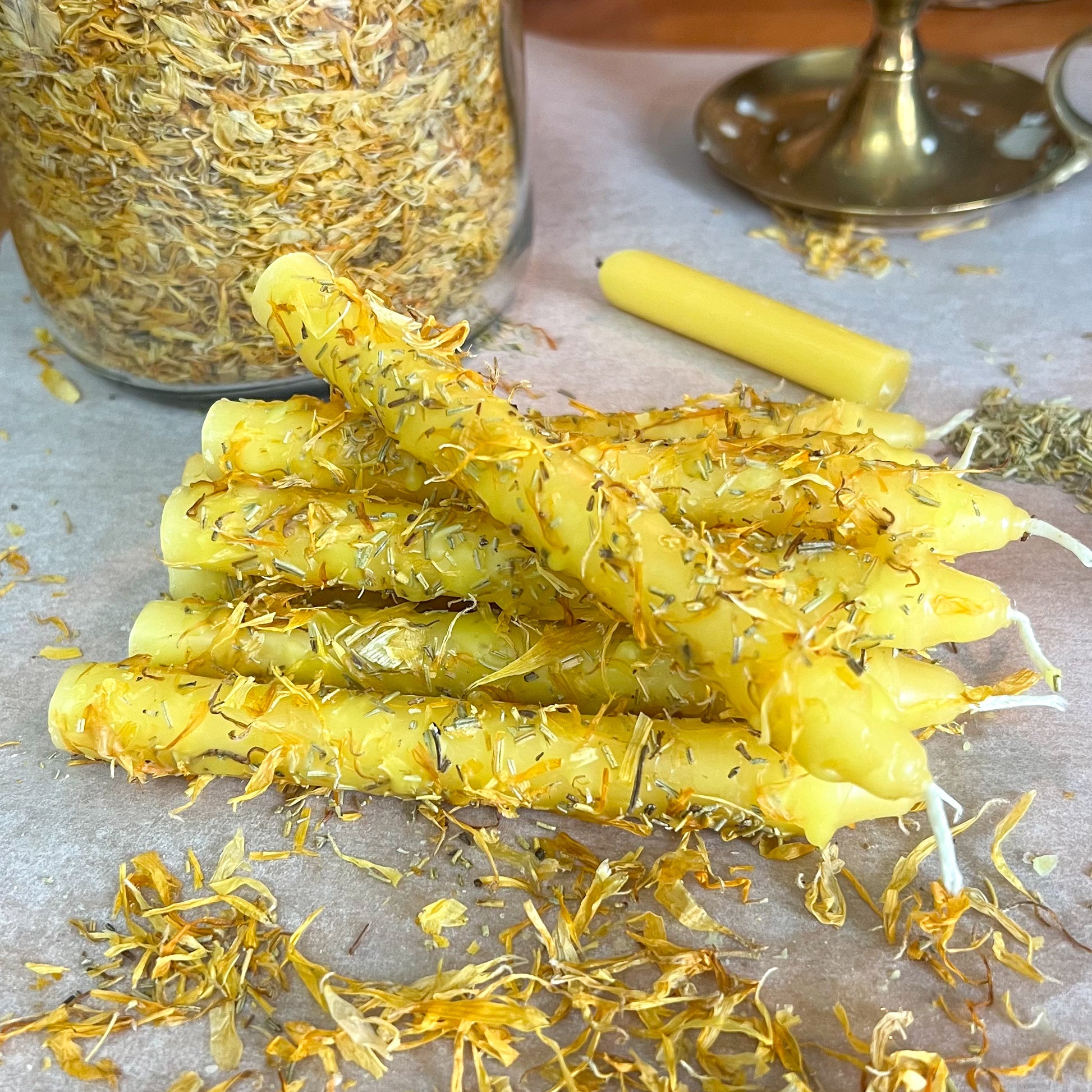 These beautifully dressed candles can be used to enhance your rituals and spell work. Made with intention, this pair of candles have the word 'abundance' etched into the unscented wax then dressed with calendula petals. Calendula petals can be used to aid abundance and happiness.