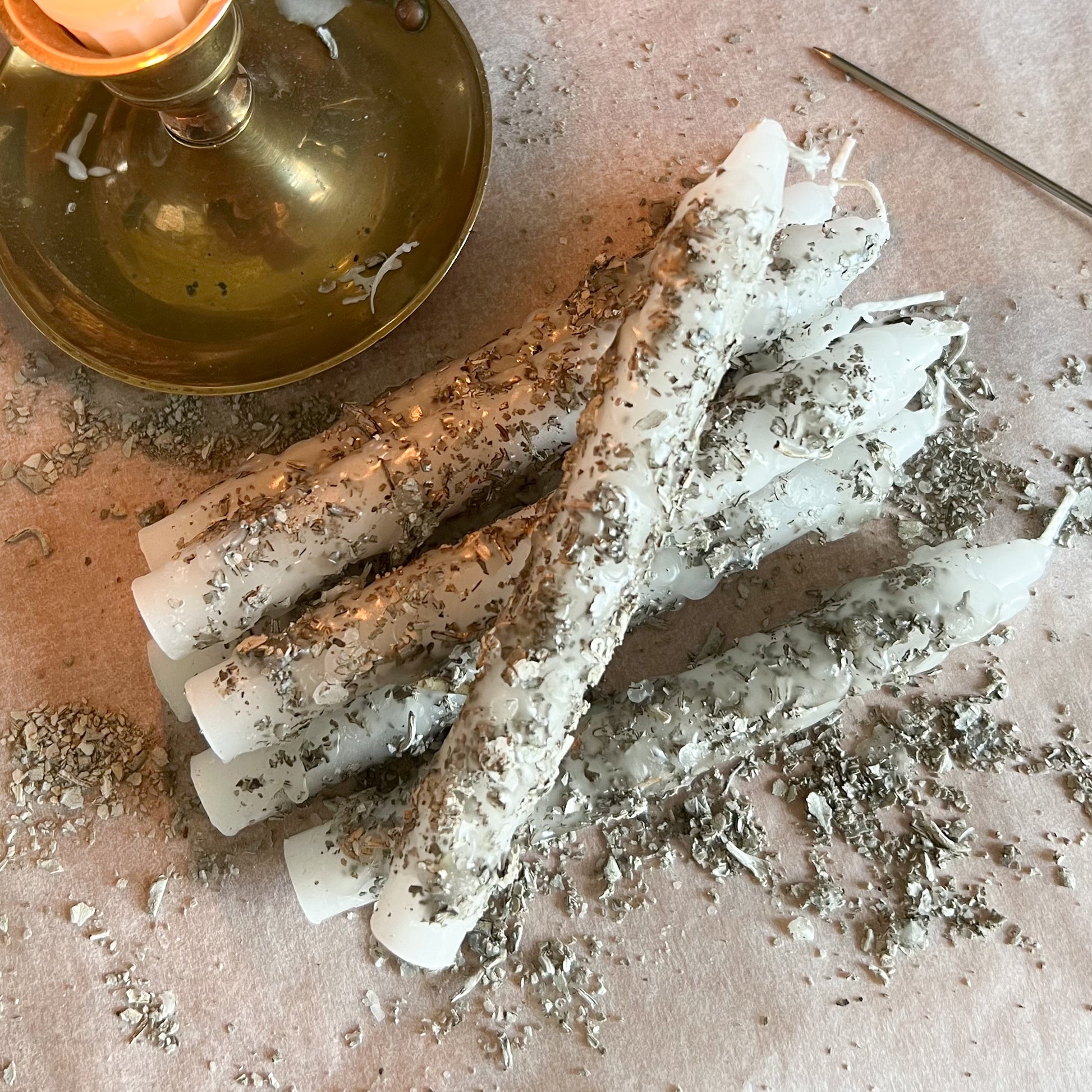 These beautifully dressed candles can be used to enhance your rituals and spell work Made with intention, this pair of candles have the word 'energy cleanse' etched into to the unscented wax then dressed with white sage.